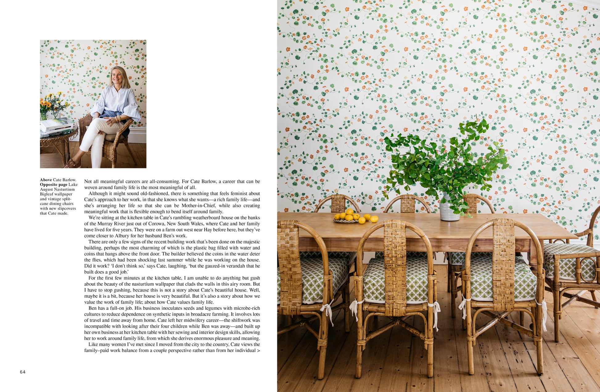We visit a vanilla farm, we go fly fishing in Victoria and we look at Australia’s burgeoning seaweed industry. We meet painters Georgia Spain and Kiata Mason, and wood-carver Elise Cameron Smith. We hang out at a fisherman’s shack in South Australia, renovated by the Read and Hall sisters, and then learn how to block print wallpaper in a rambling country house in the Riverina, NSW.